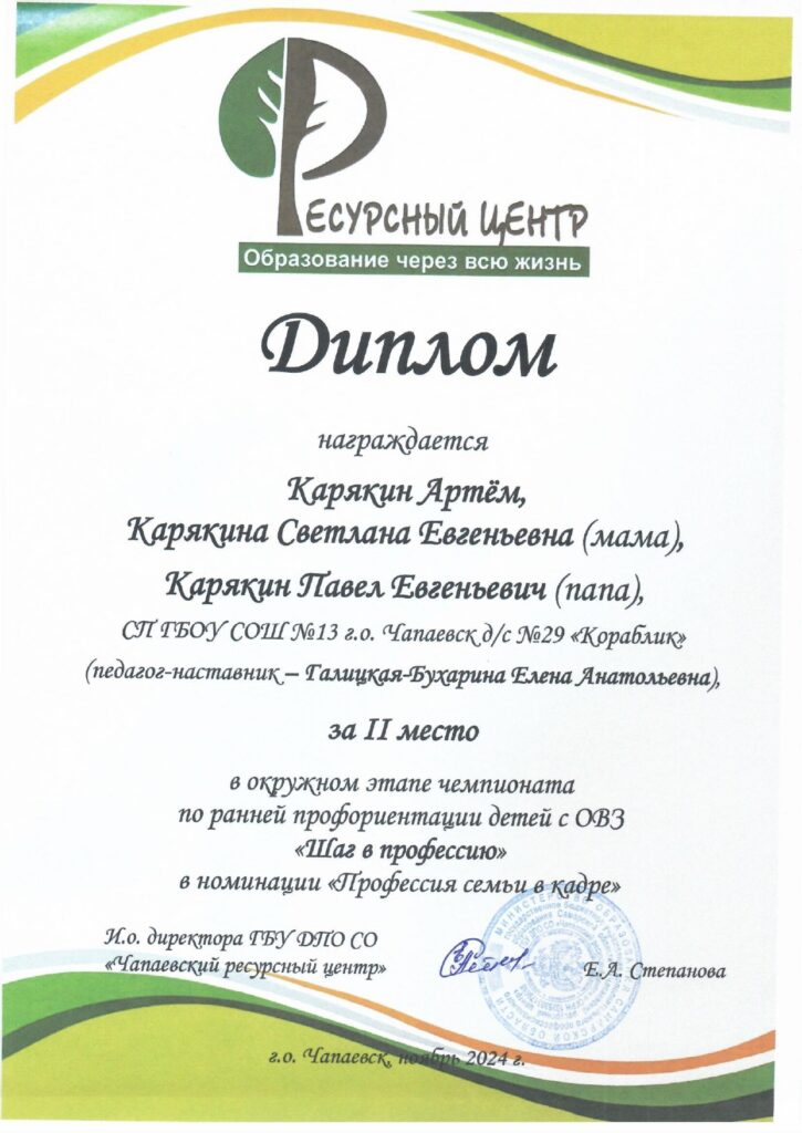 Структурное подразделение ГБОУ СОШ № 13 г.о. Чапаевск – «Детский сад №29 «Кораблик», реализующее основные общеобразовательные программы дошкольного образования